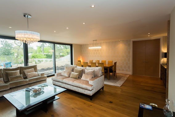 The Chislehurst Project is a warm, contemporary family home scheme designed to feel inviting, practical and polished. Natural timber flooring, soft neutral walls and carefully chosen lighting create a calm backdrop, while layered textures and feature details add character throughout.