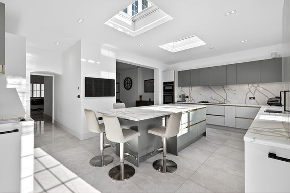 The Streatham Project is a bright, contemporary home scheme designed around clean lines, strong natural light and a calm, modern palette. Crisp white walls and polished finishes create an airy backdrop, while charcoal and soft grey tones add depth and definition.